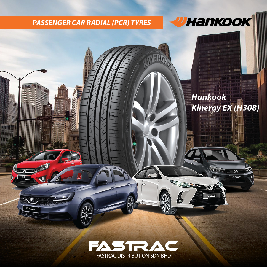 The Hankook Kinergy EX (H308) is the best tyre option for passenger cars including Proton and Perodua vehicles such as the all-new Saga MC3, Iriz, Axia, Myvi and Bezza which are equipped with popular 14” to 15” tyre fitments such as: