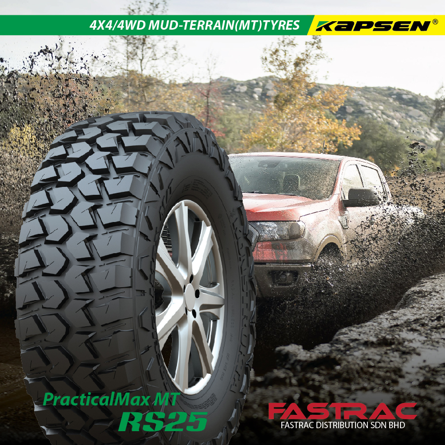 Kapsen PracticalMax MT (RS25) is available from Fastrac Distribution, a Malaysia tyre supplier based in Sibu, Sarawak, East Malaysia. We distribute and supply Kapsen tyres throughout central Sarawak including Sibu, Bintulu, Mukah, Sarikei and Kapit, southern Sarawak including Kuching, Sri Aman, Serian, Kota Samarahan, Saratok, Betong and Siburan and northern Sarawak including Miri, Lutong and Niah: